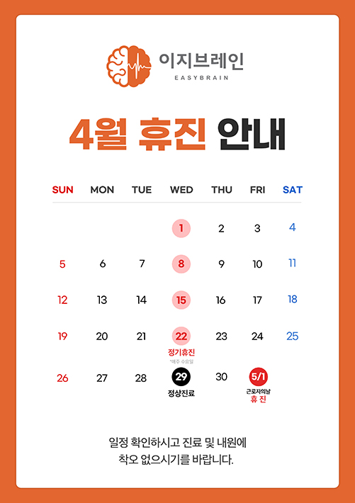 ※ 수요일, 일요일 및 공휴일 휴진